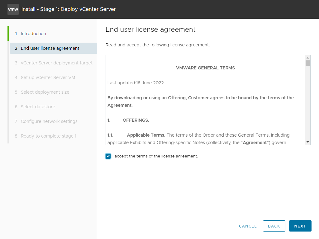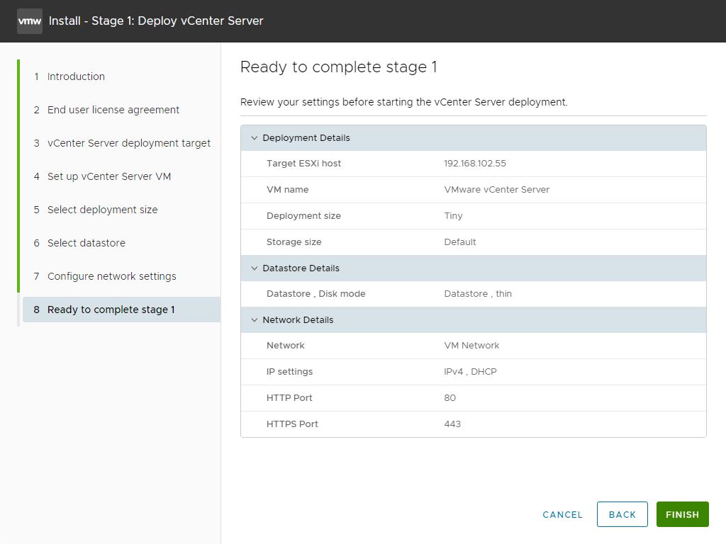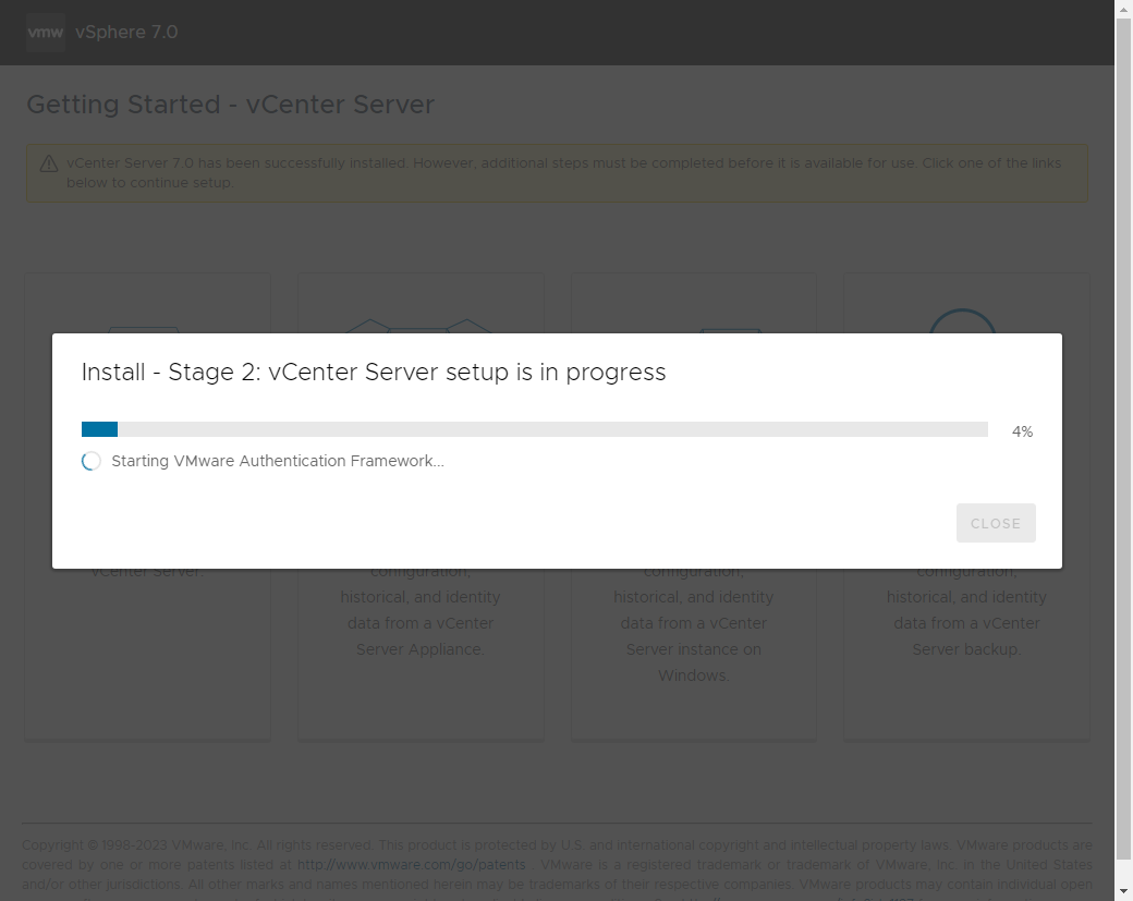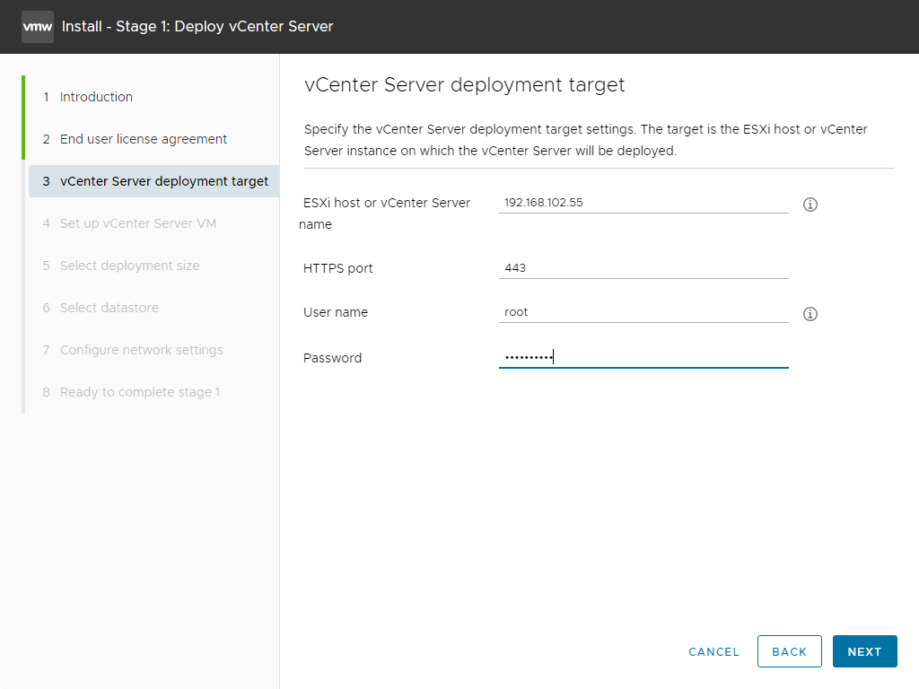 Stage 2 - Set up vCenter Server 진행