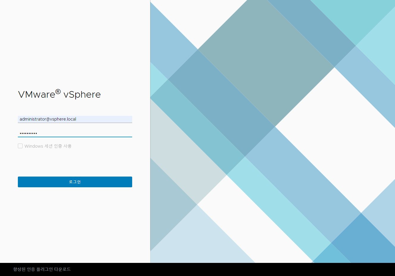 설치 시 입력한 로그인 정보로 로그인