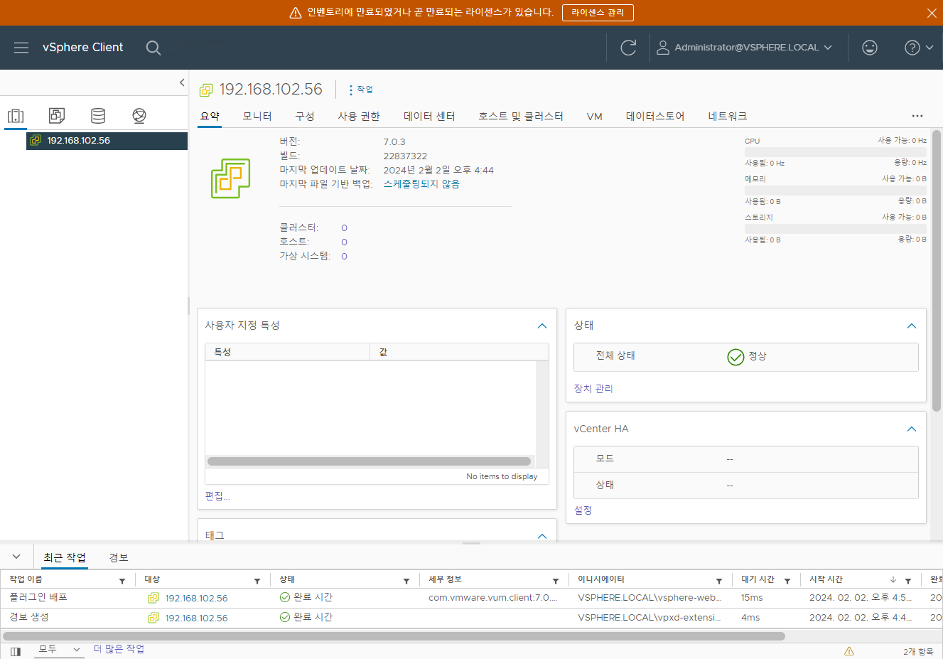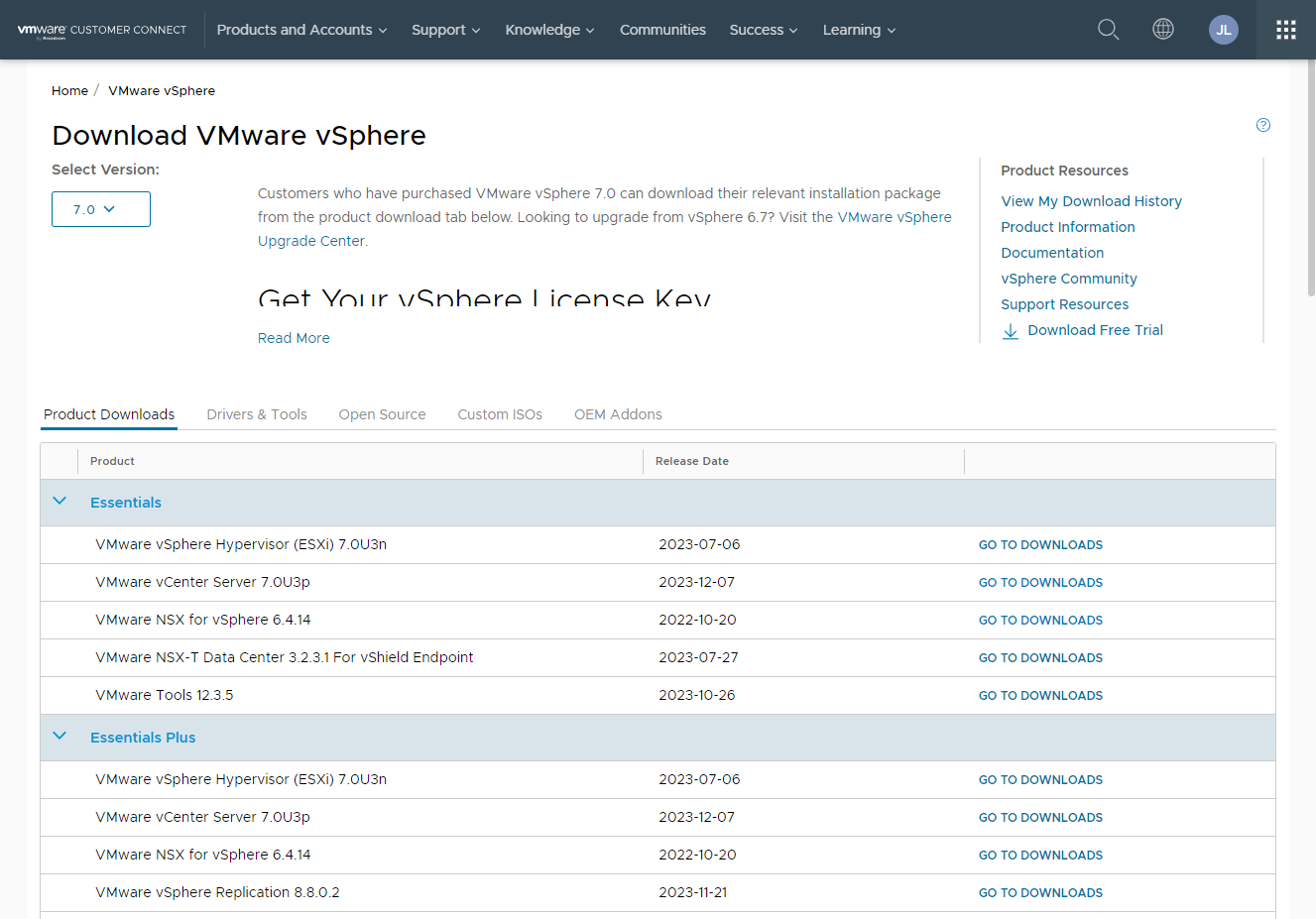 다운로드 : https://customerconnect.vmware.com/downloads/info/slug/datacenter_cloud_infrastructure/vmware_vsphere/7_0