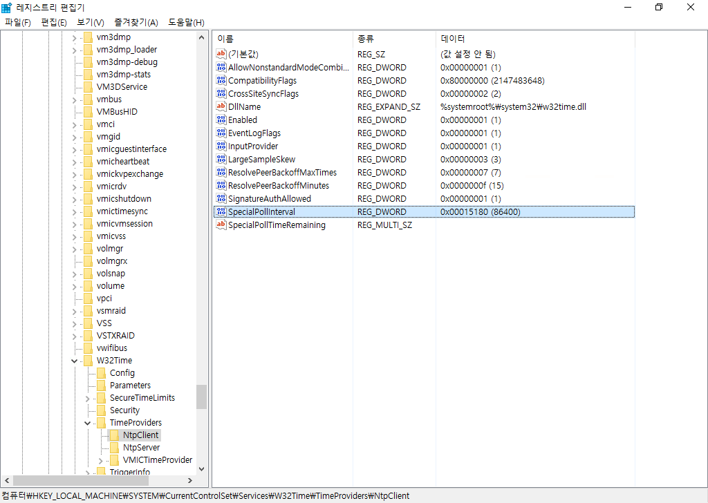 HKEY_LOCALMACHINE\SYSTEM\CurrentControlSet\services\W32Time\TimeProviders\NtpClient